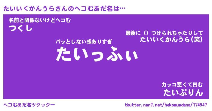 | ヒーロー風カッコイイあだ名 | 『スーパータイイクカンウラ』 |