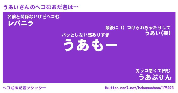 | 意味不明あだ名 | 『ペロリンうあい』『うあいフォーエバー』 |