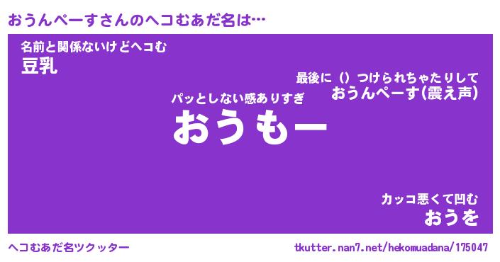 | 2回繰り返すあだ名 | 『おうおう』『おおうう』『ふんふん』 |
