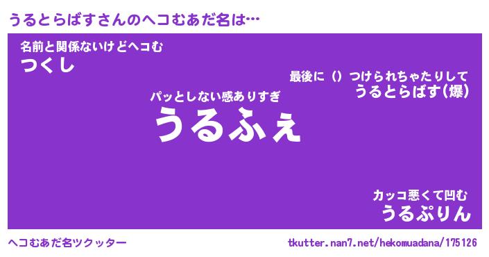 | 自動車の名前っぽいあだ名 | 『プリウル』『ウクア』『ウント』 |