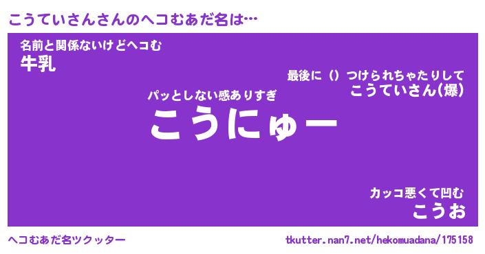 | ヒーロー風カッコイイあだ名 | 『スーパーコウテイサン』『魔戒騎士コウ』 |