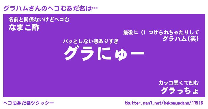 | ヒーロー風カッコイイあだ名 | 『スーパーグラハム』『幻影騎士グラ』 |
