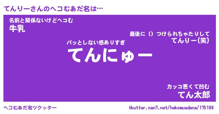 | 意味不明あだ名 | 『ペロリンてんりー』『永久保存てんりー』 |