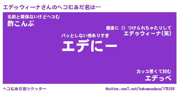 | 男性向けラノベタイトル風あだ名 | 『エデゥウィーナの憂鬱』 |