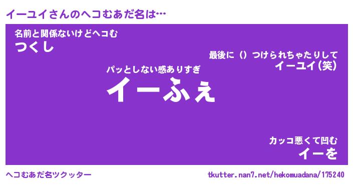 | ファンタジー風あだ名 | 『イーフェル』『エターナルイーユイー』 |