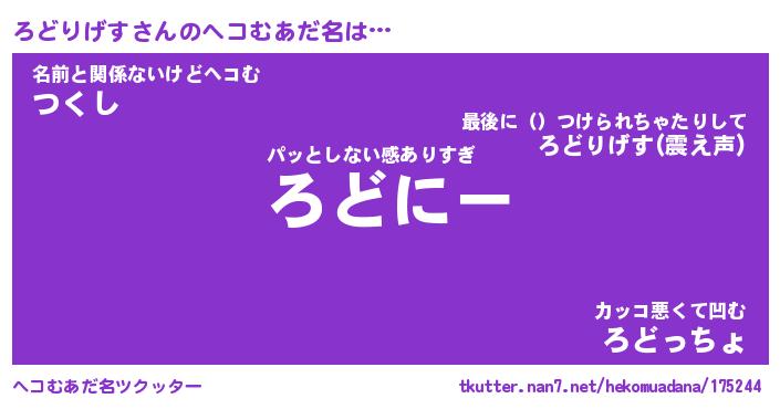 | 2回繰り返すあだ名 | 『ろどろど』『ろろどど』『いらいら』 |