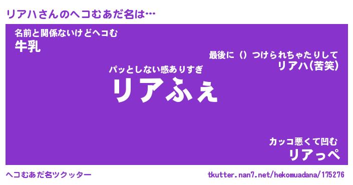 | ヒーロー風カッコイイあだ名 | 『スーパーリアハ』『ウルトラリアハマン』 |