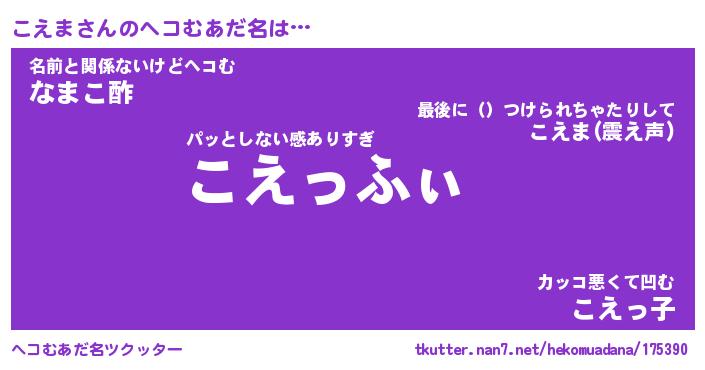 | ファンタジー風あだ名 | 『コエフェル』『エターナルコエマー』 |