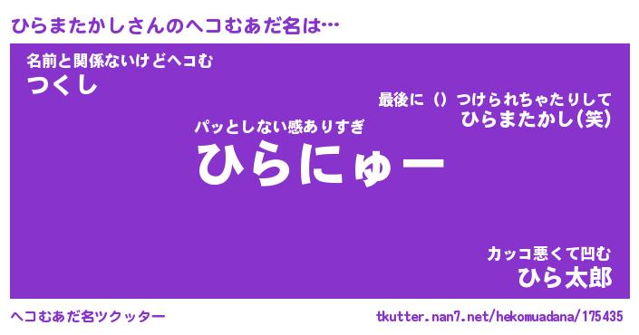 | ヒーロー風カッコイイあだ名 | 『スーパーヒラマタカシ』『炎刃騎士ヒラ』 |