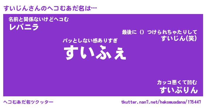 | 意味不明あだ名 | 『ペロリンすいじん』『永久保存すいじん』 |
