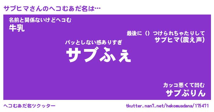 | ファンタジー風あだ名 | 『サブフェル』『エターナルサブヒマー』 |