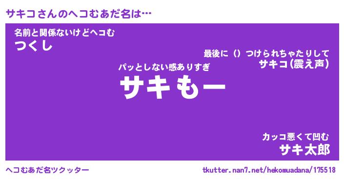 | ファンタジー風あだ名 | 『サキフェル』『エターナルサキコー』 |