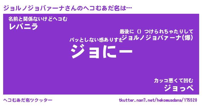| 2回繰り返すあだ名 | 『ジョジョ』『ジジョョ』『べろべろ』 |