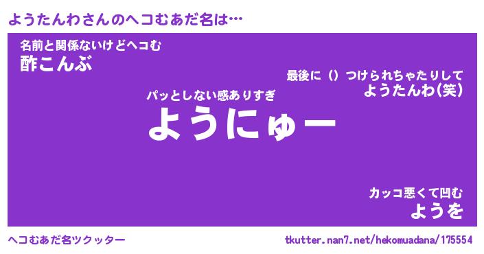 | 男性向けラノベタイトル風あだ名 | 『ようたんわの憂鬱』 |