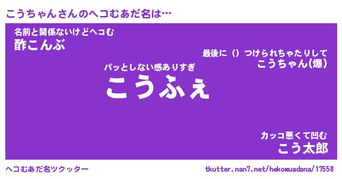 | ファンタジー風あだ名 | 『コウフェル』『エターナルコウチャンー』 |