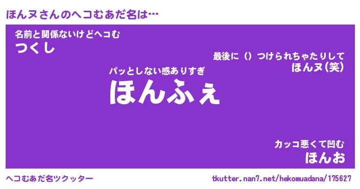 | ファンタジー風あだ名 | 『ホンフェル』『エターナルホンヌー』 |