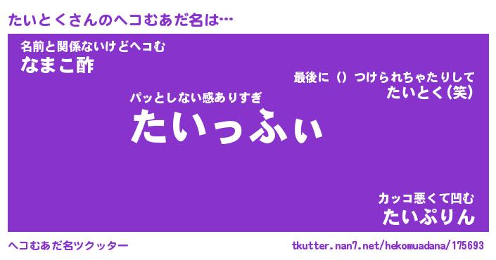 | ポケモン風あだ名 | 『タイチュウ』『タイトダネ』 |