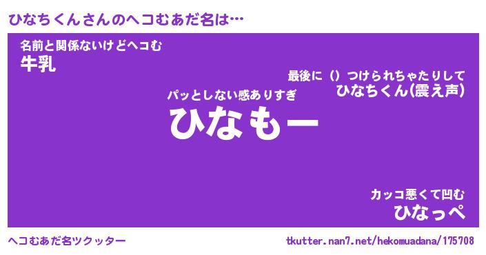 | 男性向けラノベタイトル風あだ名 | 『ひなちくんの憂鬱』 |