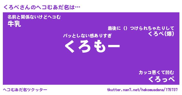| 2回繰り返すあだ名 | 『くろくろ』『くくろろ』『ぬるぬる』 |