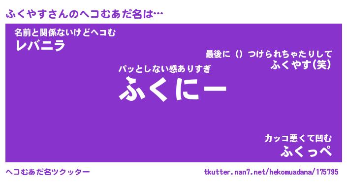 | 意味不明あだ名 | 『ペロリンふくやす』『永久保存ふくやす』 |