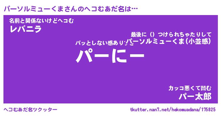 | ヒーロー風カッコイイあだ名 | 『スーパーパーソルミュークマ』 |