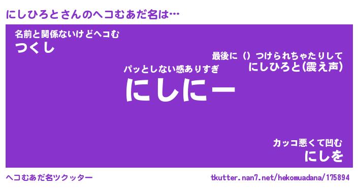 | ポケモン風あだ名 | 『ニシチュウ』『ニシヒダネ』 |