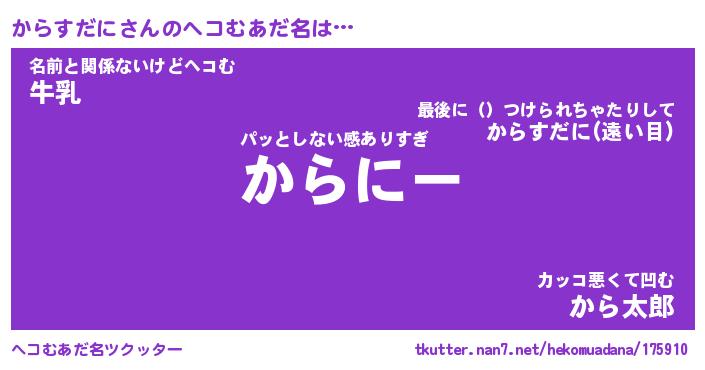 | ピコ太郎風あだ名 | 『カコ次郎』『ピカ史郎』『カラ一郎』 |