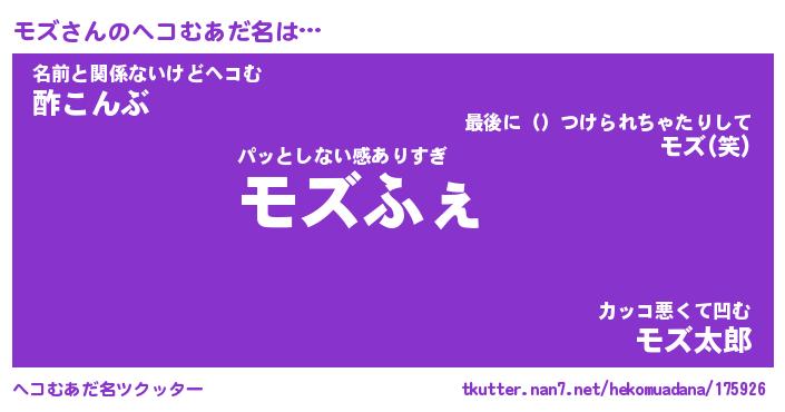 | ファンタジー風あだ名 | 『モズフェル』『エターナルモズー』 |