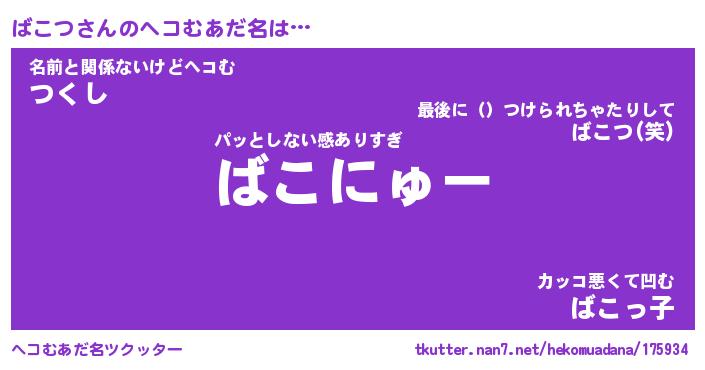 | ヒーロー風カッコイイあだ名 | 『スーパーバコツ』『ウルトラばこつマン』 |