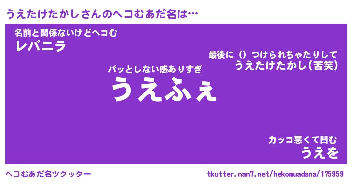 | 男性向けラノベタイトル風あだ名 | 『うえたけたかしの憂鬱』 |
