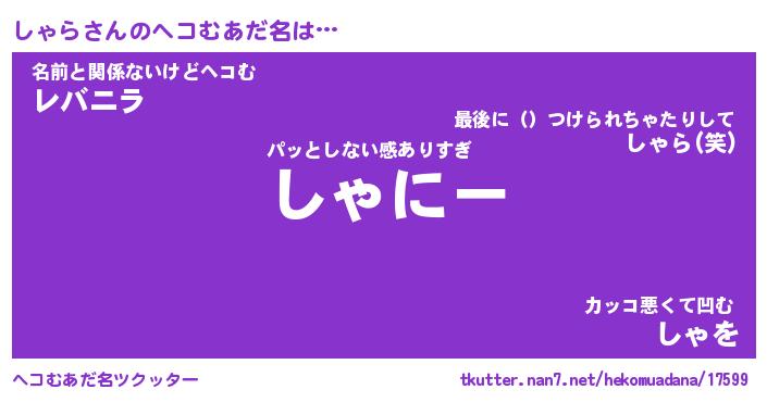 | 意味不明あだ名 | 『ペロリンしゃら』『しゃらフォーエバー』 |