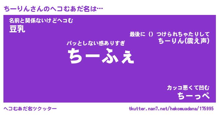 | 意味不明あだ名 | 『ペロリンちーりん』『永久保存ちーりん』 |