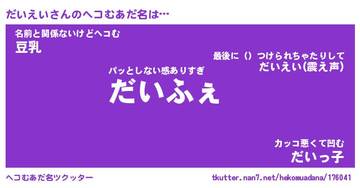 | 意味不明あだ名 | 『ペロリンだいえい』『永久保存だいえい』 |