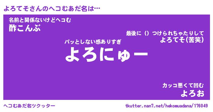 | 自動車の名前っぽいあだ名 | 『ヨロティマ』『ヨクア』『ヨント』 |