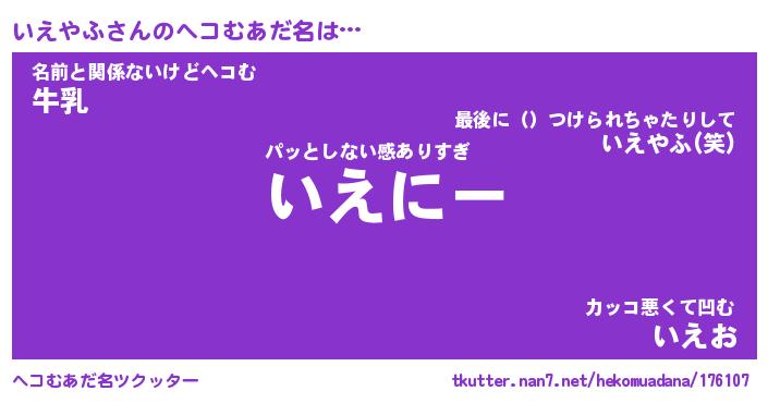| 意味不明あだ名 | 『ペロリンいえやふ』『永久保存いえやふ』 |