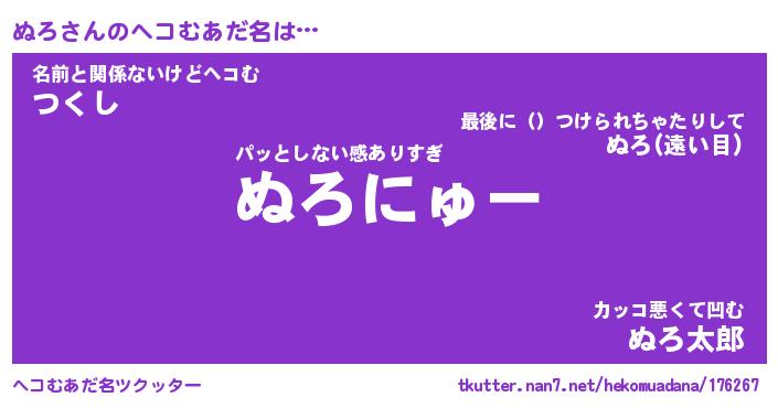| ヒーロー風カッコイイあだ名 | 『スーパーヌロ』『ウルトラぬろマン』 |