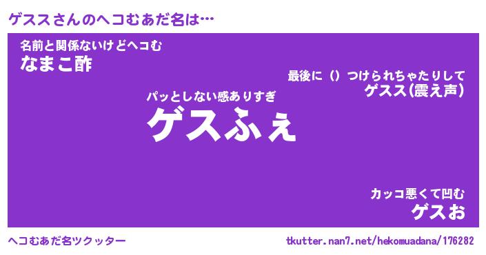 | ファンタジー風あだ名 | 『ゲスフェル』『エターナルゲススー』 |