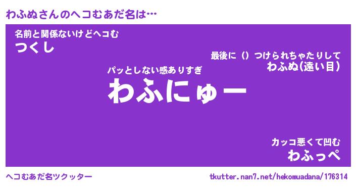 | 意味不明あだ名 | 『ペロリンわふぬ』『わふぬフォーエバー』 |