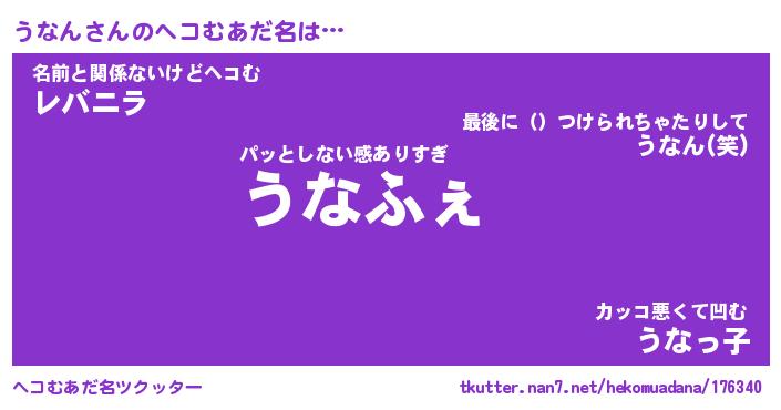 | 2回繰り返すあだ名 | 『うなうな』『ううなな』『ぬめぬめ』 |