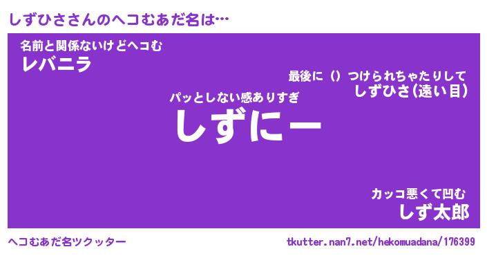 | 意味不明あだ名 | 『ペロリンしずひさ』『永久保存しずひさ』 |