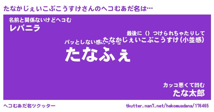 | 男性向けラノベタイトル風あだ名 | 『たなかじぇいこぶこうすけの憂鬱』 |