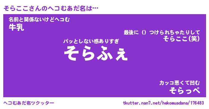 | 意味不明あだ名 | 『ペロリンそらここ』『永久保存そらここ』 |