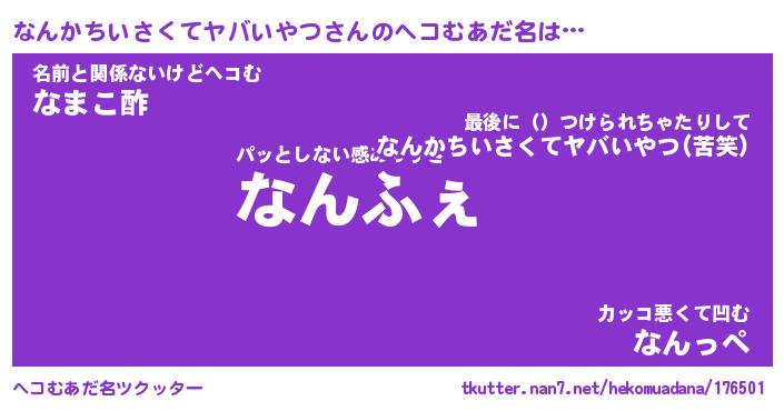 | 2回繰り返すあだ名 | 『なんなん』『ななんん』『おろおろ』 |
