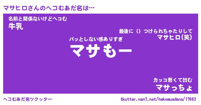 | ファンタジー風あだ名 | 『マサフェル』『エターナルマサヒロー』 |