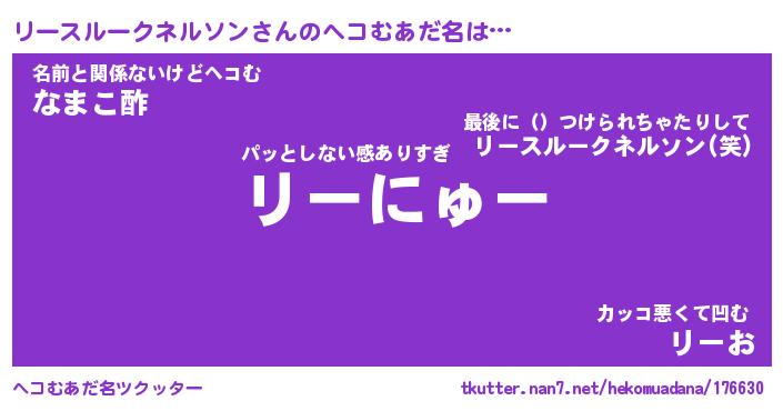 | 意味不明あだ名 | 『ペロリンリースルークネルソン』 |