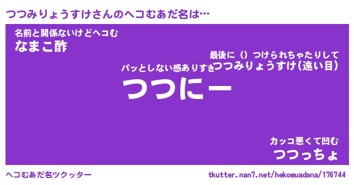 | ポケモン風あだ名 | 『ツツチュウ』『ツツミダネ』 |