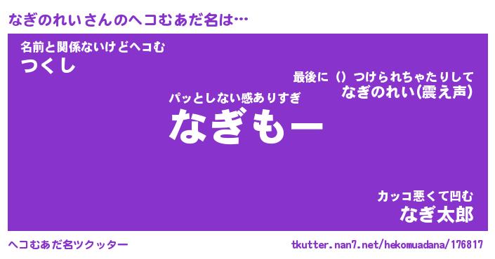 | 意味不明あだ名 | 『ペロリンなぎのれい』 |