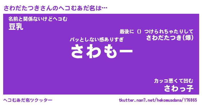 | ヒーロー風カッコイイあだ名 | 『スーパーサワダタツキ』『天弓騎士サワ』 |