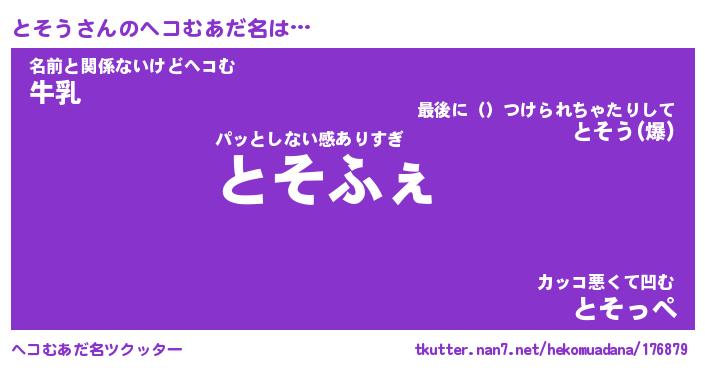 | ファンタジー風あだ名 | 『トソフェル』『エターナルトソウー』 |