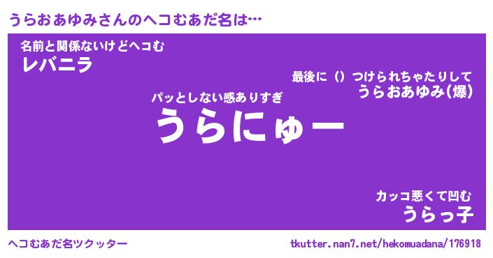 | 意味不明あだ名 | 『ペロリンうらおあゆみ』 |